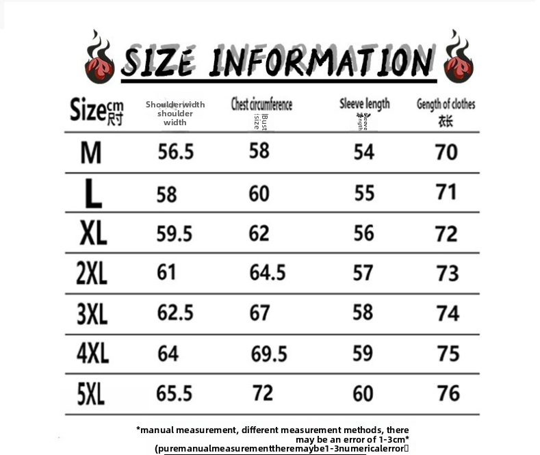 Sizes: M, L, XL, 2XL, 3XL, 4XL, 5XL